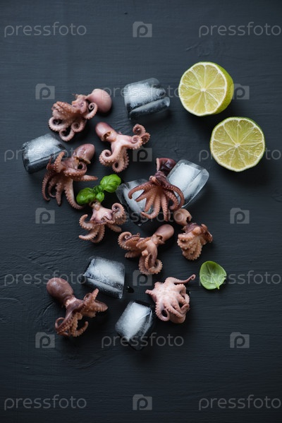 Осьминоги с лаймом и кубиками льда