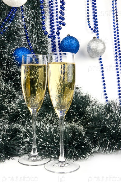 Бокалы шампанского на Рождество