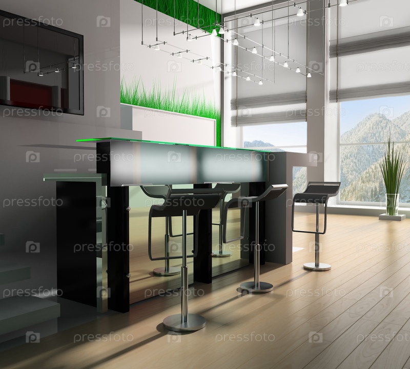 Рецепция в современном отеле 3d image