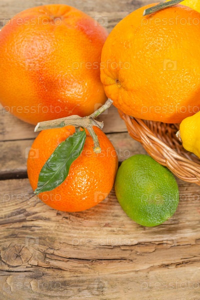 Цитрусовые на деревянном фоне