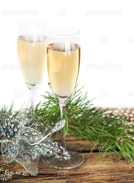 Бокалы шампанского на Рождество