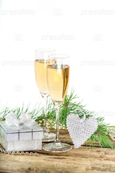 Бокалы шампанского на Рождество