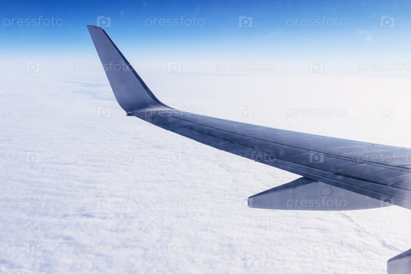 Вид из окна самолета с крылом
