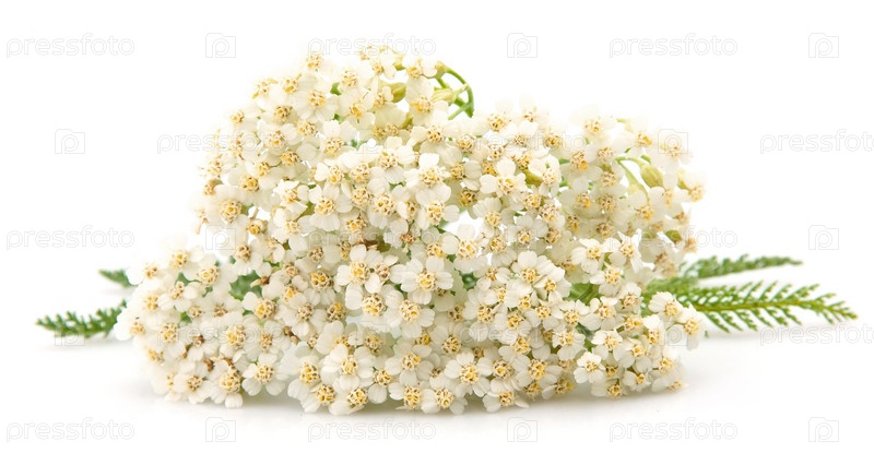 Веточка тысячелистника на белом фоне