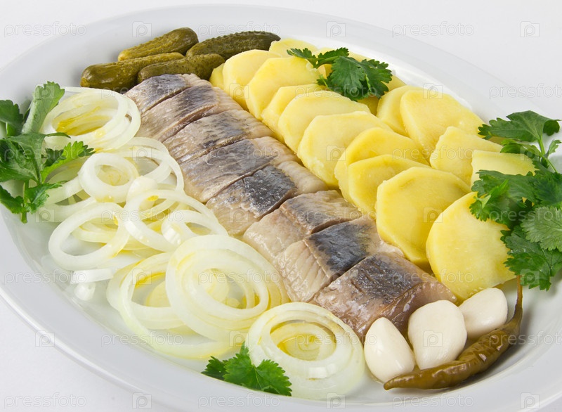 Филе сельди с луком и картофелем