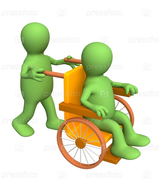 Стилизованный человечек, несущий больного в инвалидном кресле