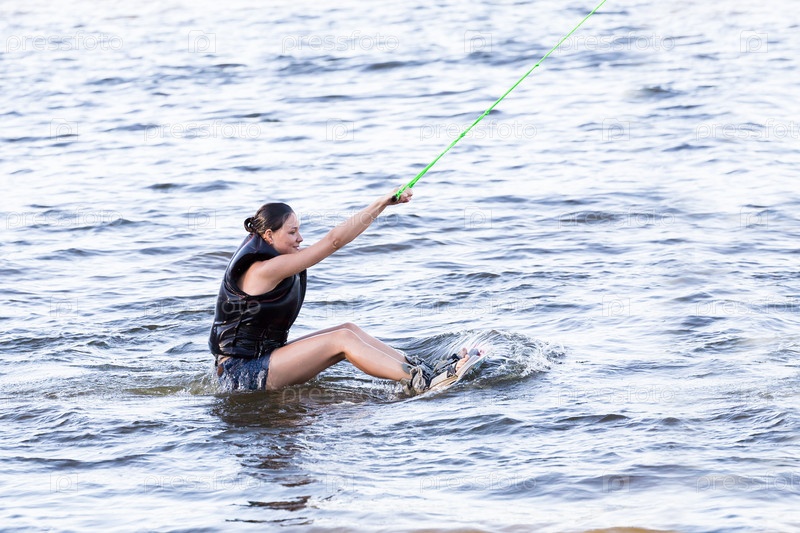 Женщина катается на вейкборде