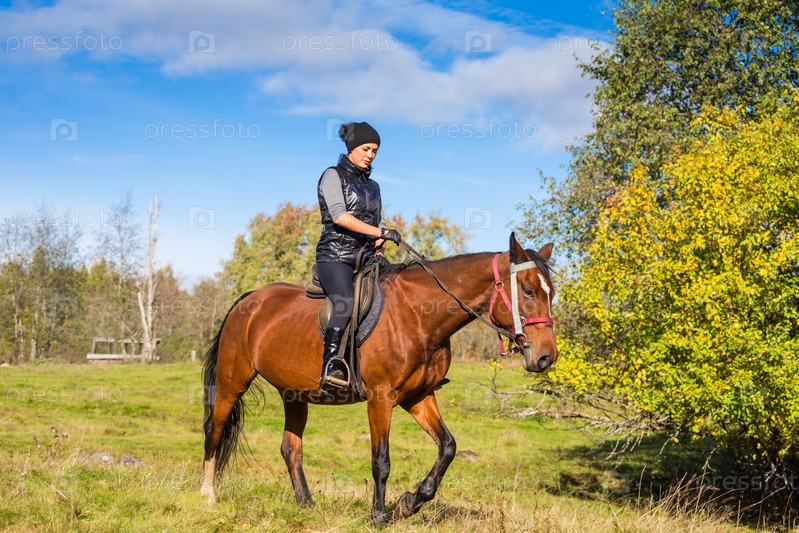 Женщина верхом на лошади