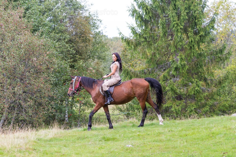 Женщина верхом на лошади