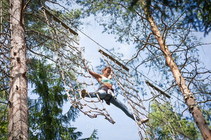 Женщина в веревочном парке