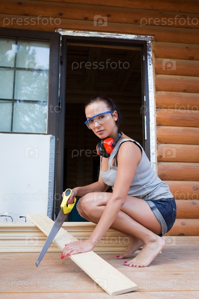 Строитель с пилой