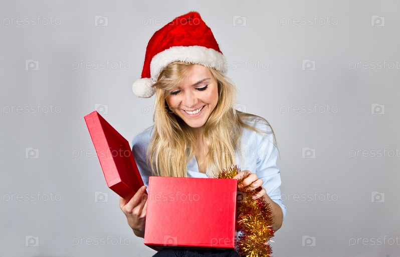 Молодая красивая женщина с рождественским подарком