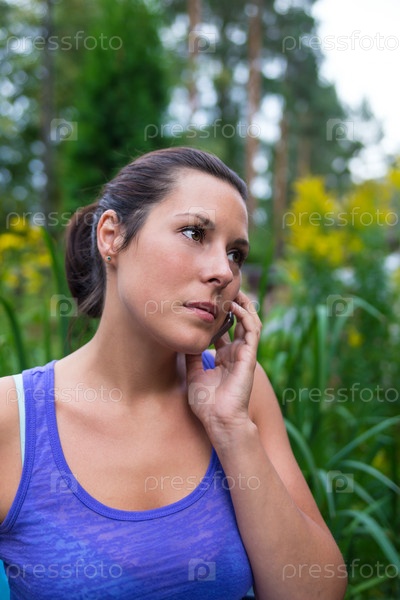 Молодая красивая женщина с мобильным телефоном
