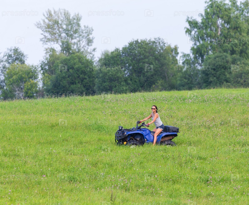Женщина едет на квадроцикле