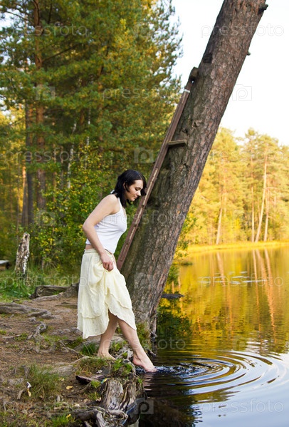 Женщина трогает воду