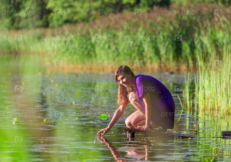 Молодая женщина возле озера