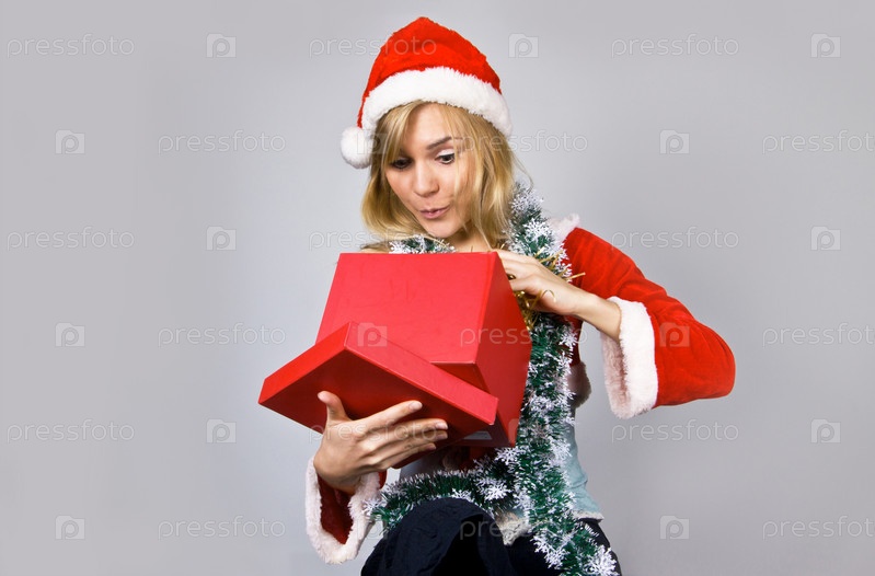 Молодая красивая женщина с рождественским подарком