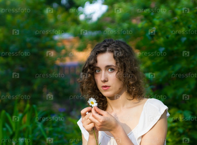 Красивая романтичная женщина с ромашкой