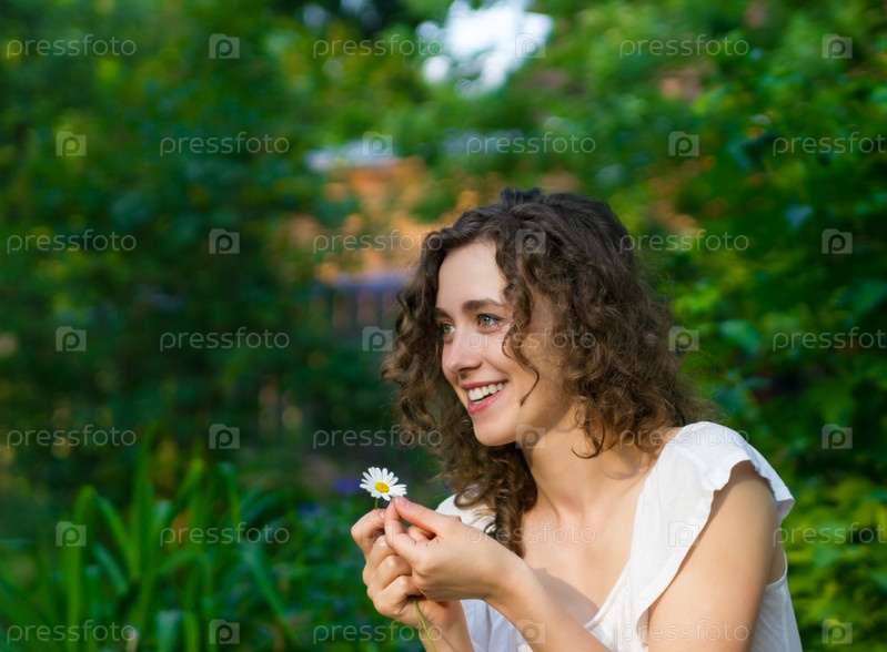 Красивая романтичная женщина с ромашкой