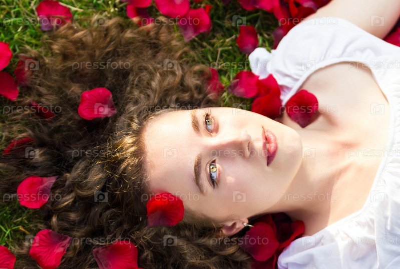 Романтичная женщина с лепестками роз