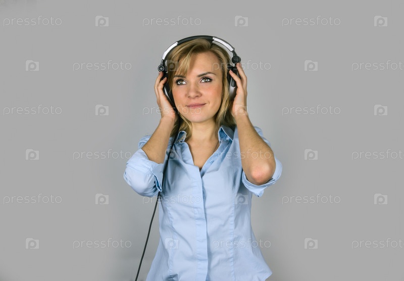 Молодая блондинка в наушниках