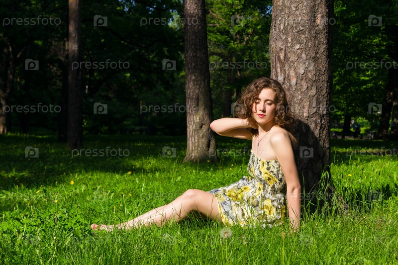 Женщина отдыхает на лужайке