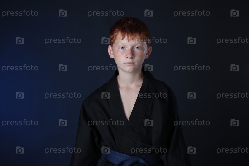 Мальчик в позе нападения из каратэ