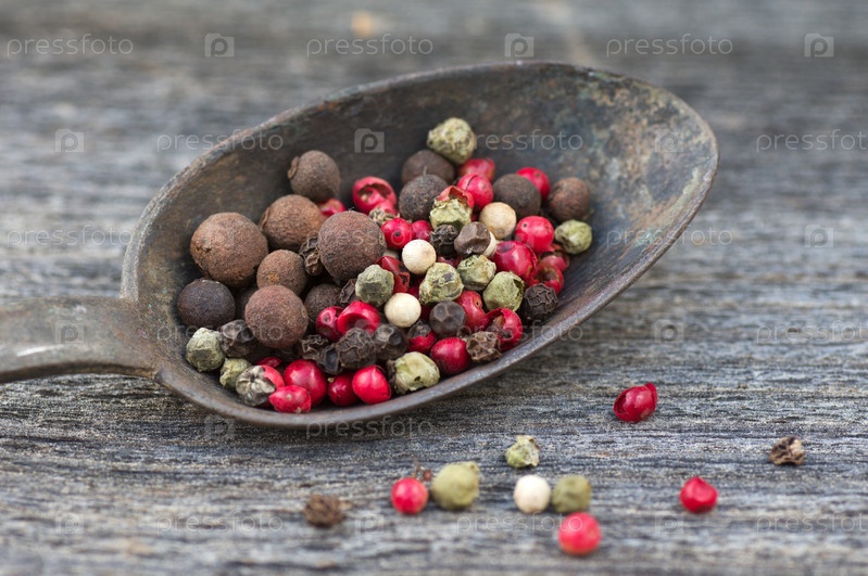 Разноцветный перец в старой ложке