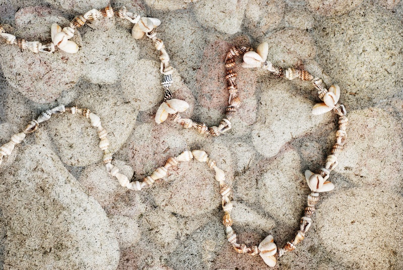 Ожерелье из ракушек на сером фоне