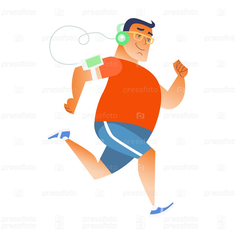 Толстый мужчина бежит с плеером