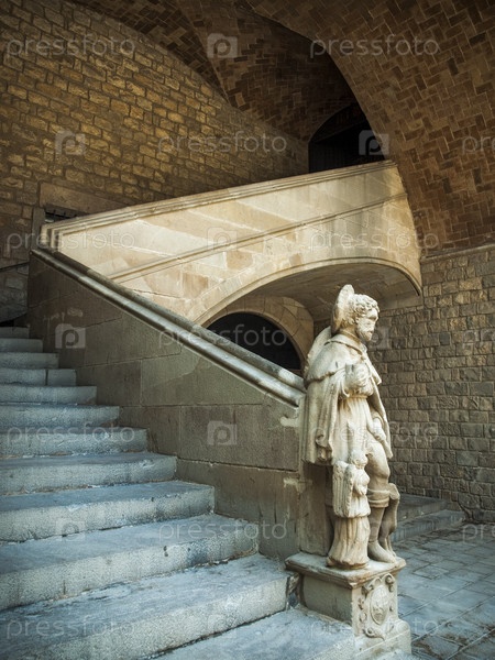 Лестница со скульптурой во внутреннем дворе. Барселона, Испания