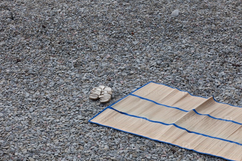 Подстилка на галечном морском пляже