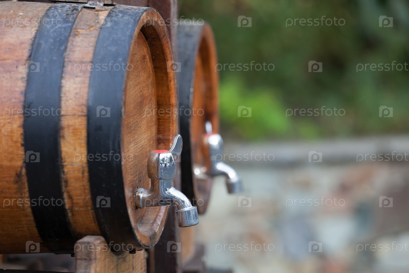 Бочки с вином стоят на улице