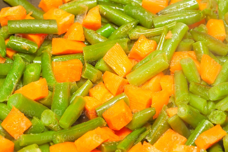 Нарезанные спаржевые бобы и морковь