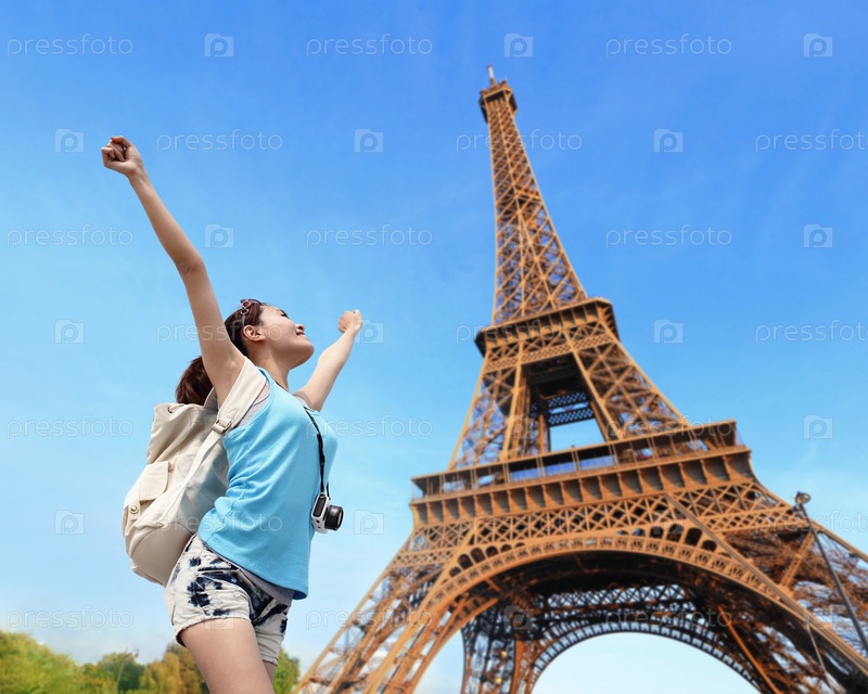 Счастливая путешественница в Париже