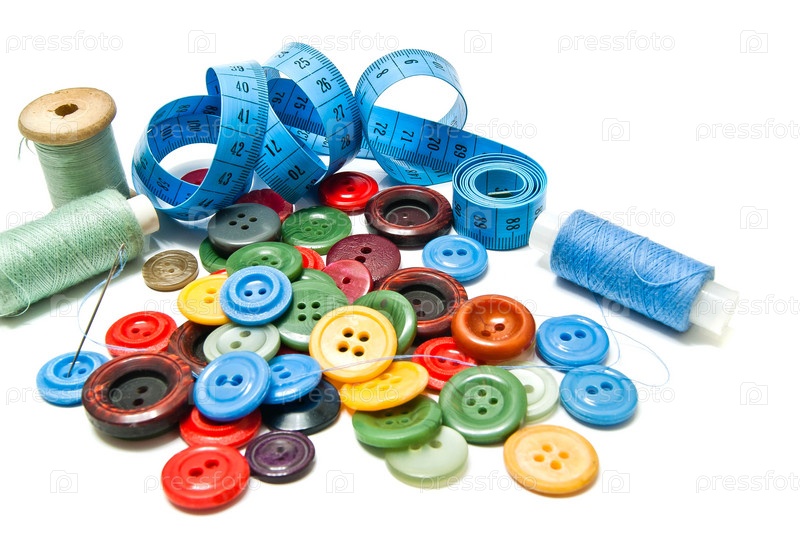 Разноцветные пуговицы и катушки ниток