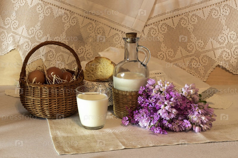 Деревенский натюрморт с молоком и хлебом