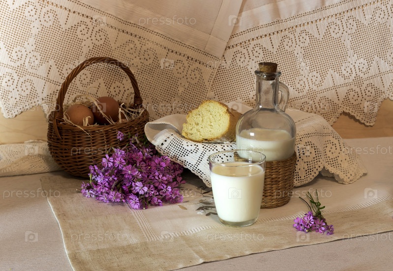 Деревенский натюрморт с молоком и хлебом
