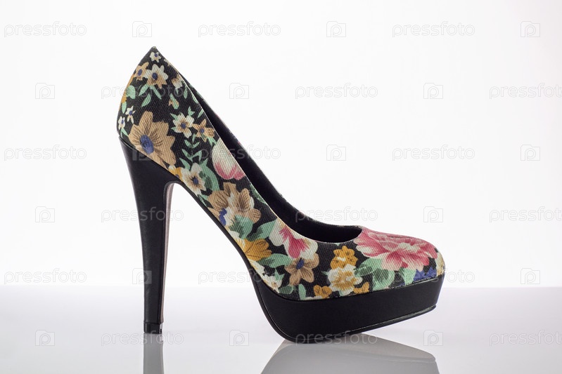 Женская туфля на высоком каблуке на белом фоне