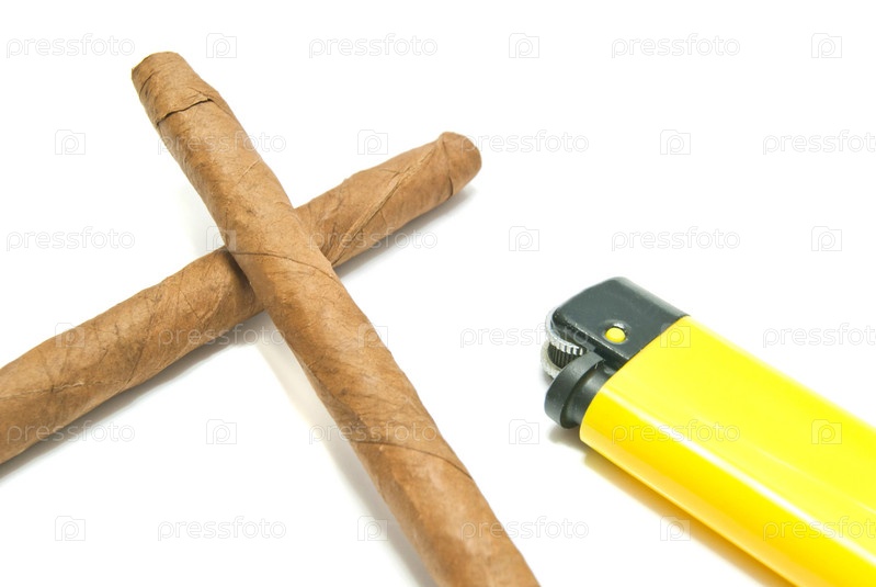 Сигары и зажигалка крупным планом