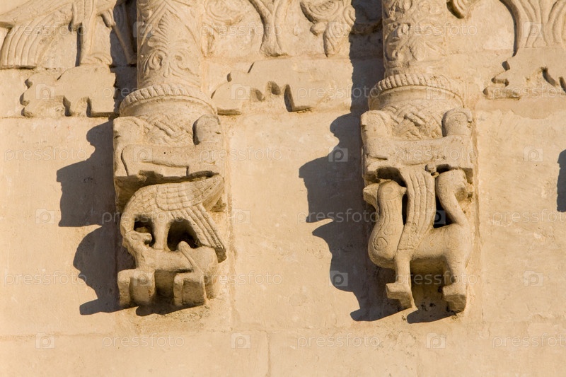 Белокаменные резные фигуры Дмитриевского собора Владимира, который был сооружен в 1193-1197 гг.
