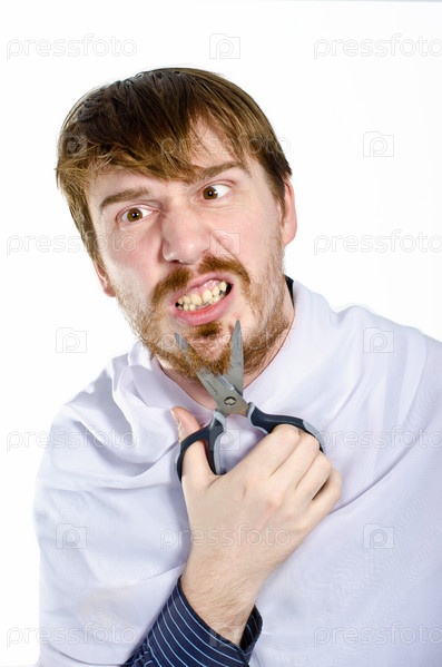 Мужчина стрижет бороду