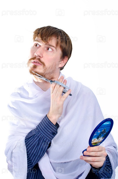 Мужчина стрижет бороду
