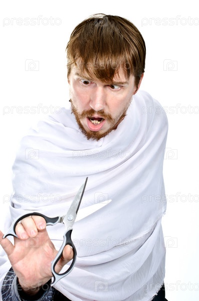Бородатый мужчина с ножницами