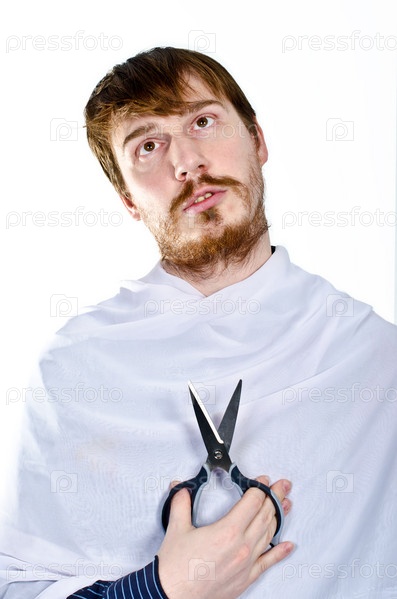Бородатый мужчина с ножницами