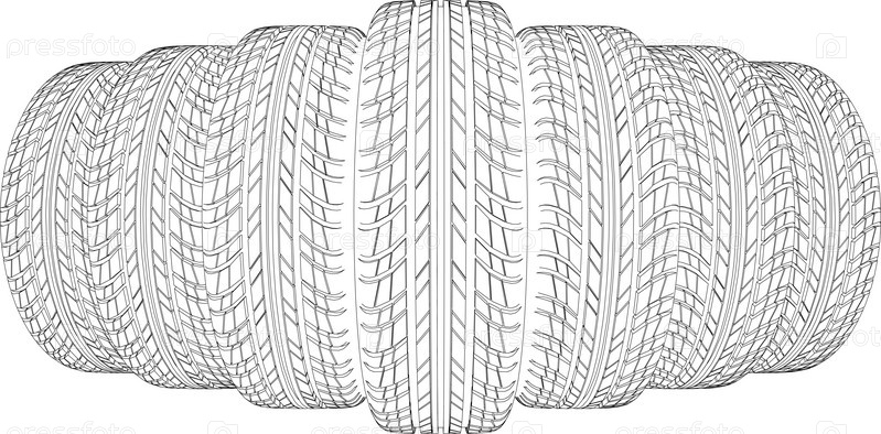 Эскиз семи автомобильных шин