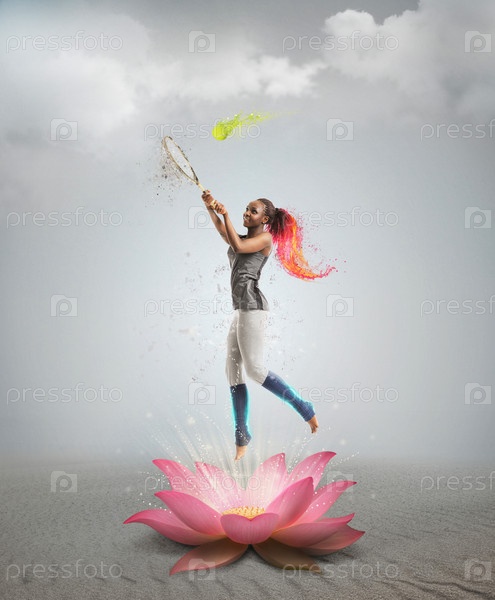 Женщина играет в теннис