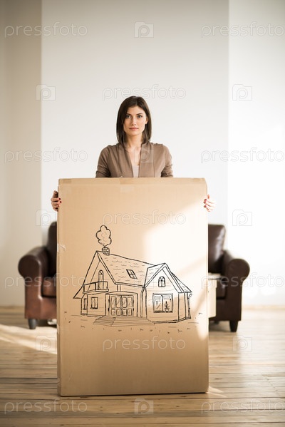 Жизнераостная женщина, держащая в картонную коробку