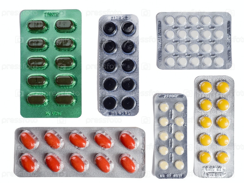 Упаковки таблеток на белом фоне