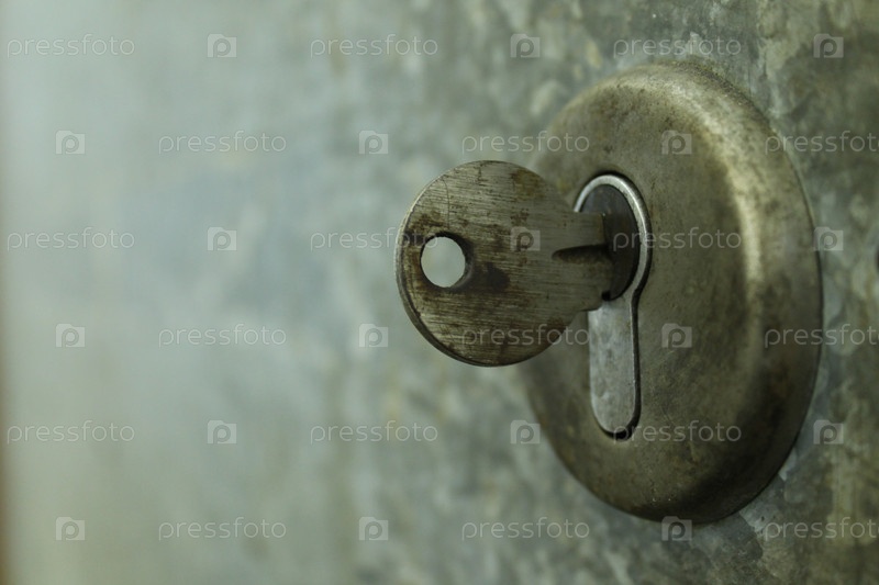 Старая замочная скважина с ключом крупным планом